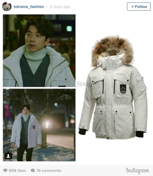 Jaket putih yang dikenakan Gong Yoo pada episode 9 keluaran DISCOVERY EXPEDITION. Merek ini asli dari Korea Selatan.